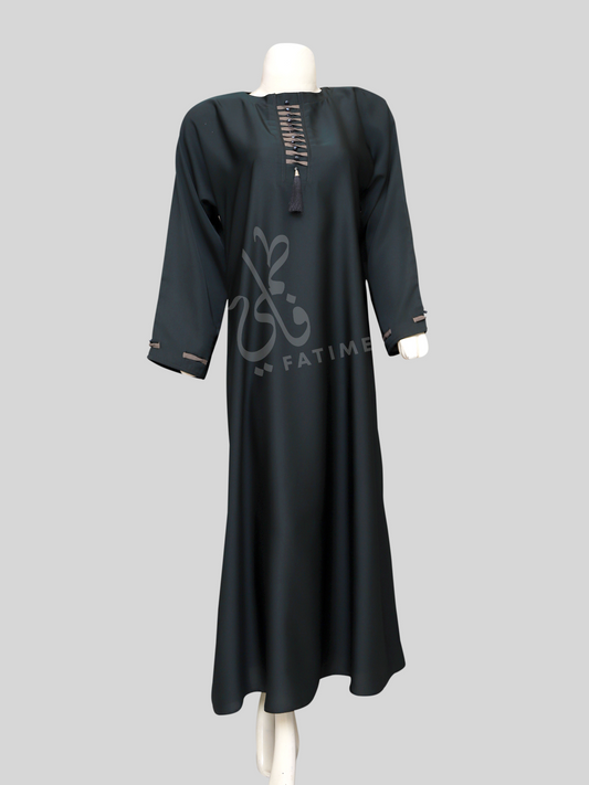 Luxurious Green Abaya with Golden Shimmering Leaves